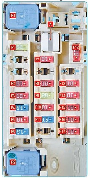 Peugeot 107 (2005 – 2007) – fuse box diagram Year of production: 2005, 2006, 2007 Instrument panel fuse boxes These are located on each side of the instrument panel under the trim. Fuse Ampere rating [A] […]