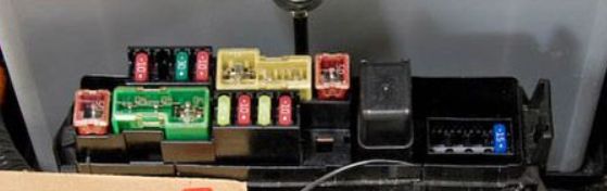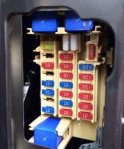 The fuse box is located on the side of the instrument panel, on the driver’s side, under the cover.