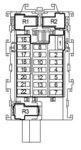 | C | 80 | Accessory 1 Relay (“15”, “17” fuses), Blower Relay (“20”, “21”, “22” fuses), “8”, “10”, “11”, “12” fuses |