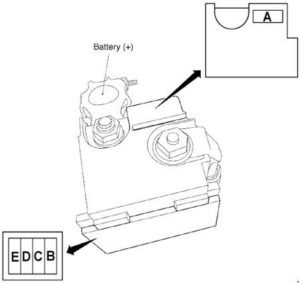 | A | 250 | Starter motor Alternator Fuse: B, C |