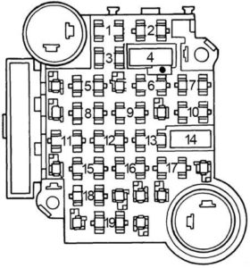 | 14 | 30 | Circuit breaker: Station wagon rear window and power tailgate, door and seat back locks, power seats and rear window defogger power |