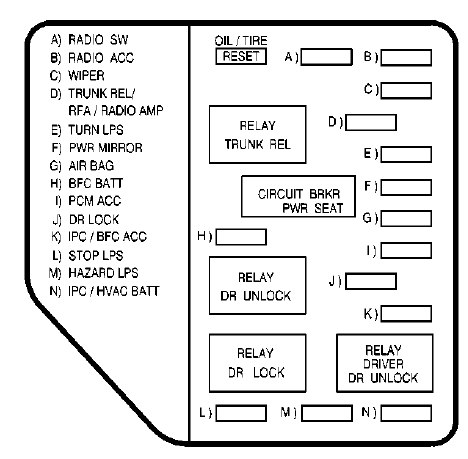 Oldsmobile Alero – fuse box – instrument panel (passenger’s side)