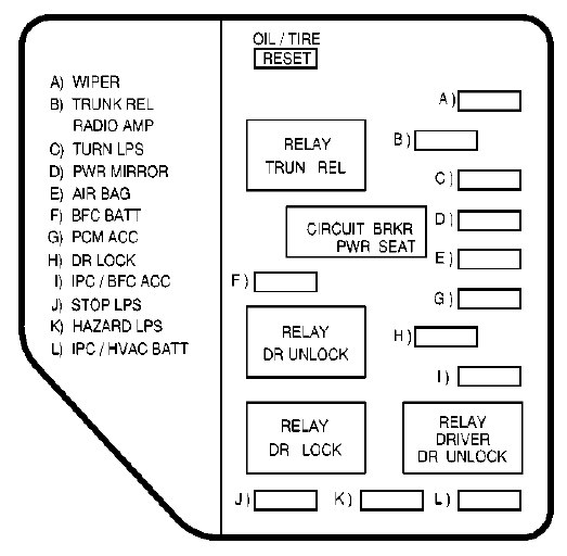 | 3 | Left Electrical Center-Stop Lamps, Hazard Lamps, Body Function Control Module, Cluster, Climate Control System |
