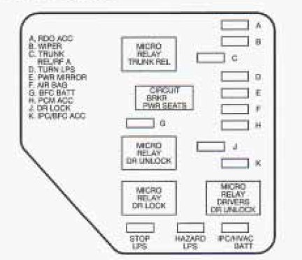 Oldsmobile Cutlass (1997 – 1999) – fuse box diagram