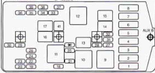 | 7 | BATT MAIN 1 | Fuses (IP): ABS MDL BATT, CIGARIDLC, CTSY LAMP, FRT PWR SCKT, PWR LOCK, PWR MIRROR and RR PWR SCKT |