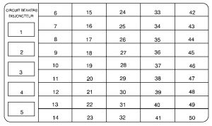 | 5 | IGN MAIN 1 | Ignition Switch to Fuses (Instrument Panel): ABS/TCS IGN, CRUISE, DRL, ELEC PRNDL, IGN 1, PSD, SIR, T/SIG and PCM [IGN MAIN Relay (Underhood Electrical Center Fuses: A/C CLU, ELEK IGN, IGN 1-U/H, INJ, TCC)] |