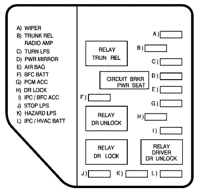 Oldsmobile Alero – fuse box – instrument panel (passenger’s side)