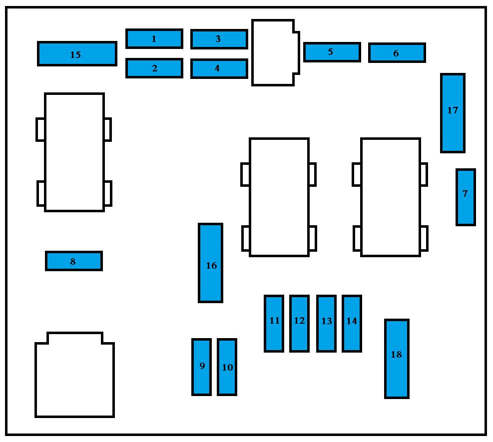 | 15 | 30 | Throttle unit heater – Oxygen sensor – Engine control unit – Air flow meter – Ignition coil – Engine management solenoid valve – Injectors |