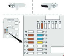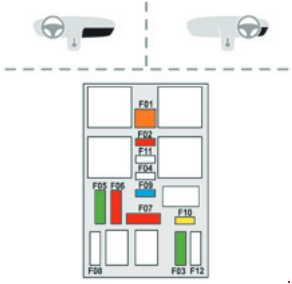 Peugeot 208 – fuse box diagram – dashboard (on the left side)