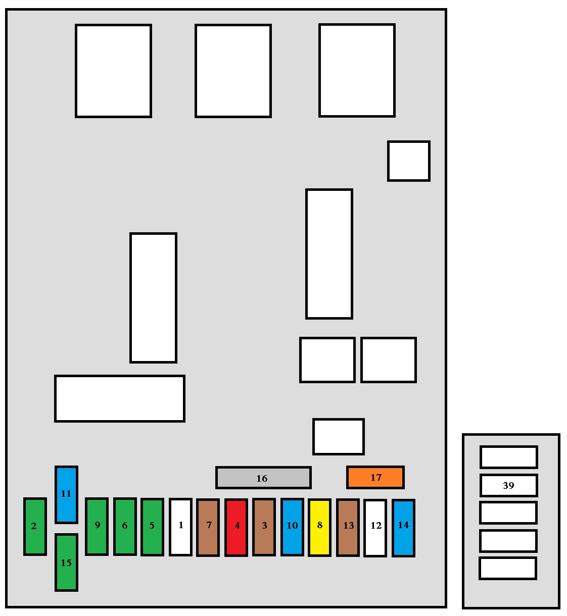 | 6 | 10 | Automatic gearbox control unit, automatic gearbox lever locking control, push control switch, fan assembly high speed relay |