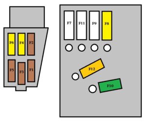 Fiat Punto Evo (2010 – 2012) – fuse box diagram Year of production: 2010, 2011, 2012 Fuse location The fuses are grouped in three control units: on the dashboard, in the engine compartment and in […]
