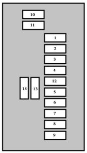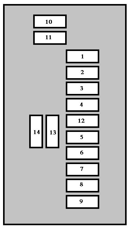 | 14 | 10 | Engine fusebox, boot fusebox, trailer fusebox (accessory), wipers relay |