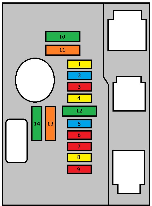 Trailer fuse box (accessory), parking assistance control unit supply, passenger seat memory unit, rain and brightness sensor, alarm
