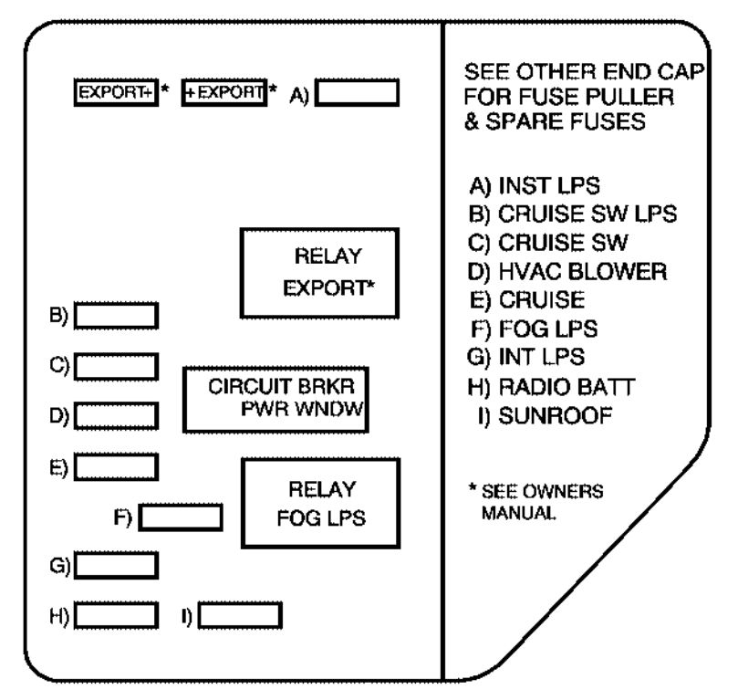 Pontiac Grand Am – fuse box – instrument panel (driver’s side)