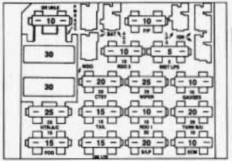 | TURN B/U | 20 | Turn Signal Flashers; Back-up Lights |