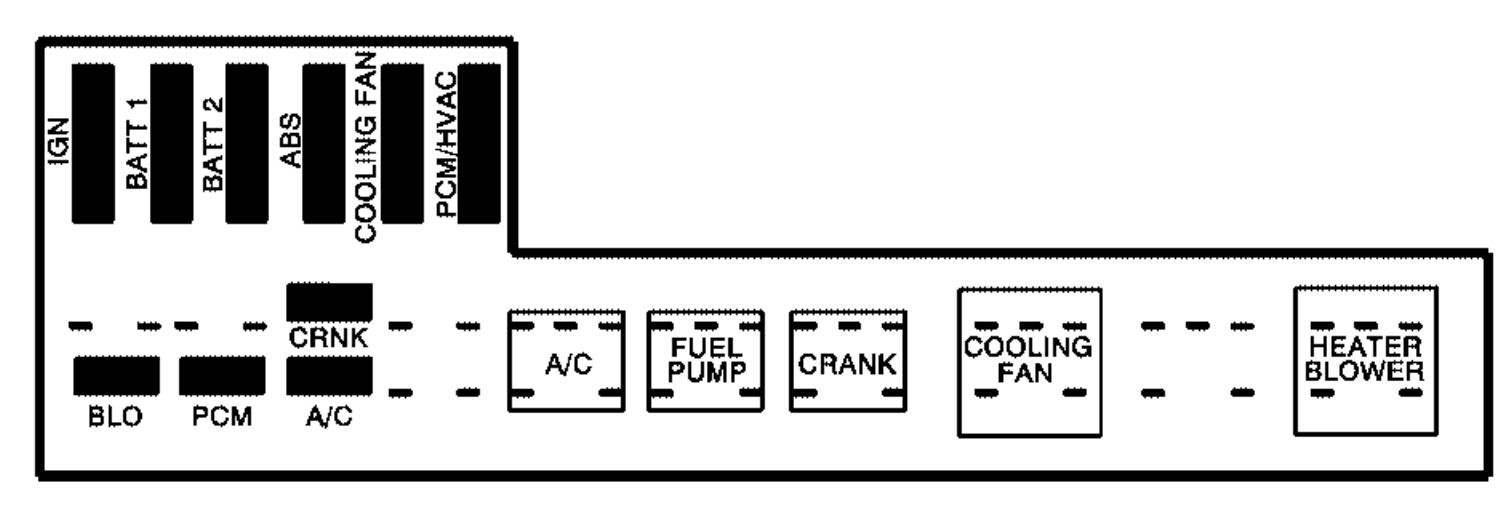 | PCM/HVAC | Powertrain Control Module, Heater and A/C Blower |
