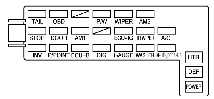 | DEF | Rear Window Defogger, M-HTR/DEF 1–UP Fuse |