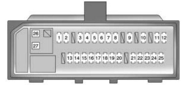 | 25 | Ignition, Outside Rearview Mirrors, Audio System, Main Body ECU, Clock, Brake Transmission Shift Interlock, Cigarette Lighter |