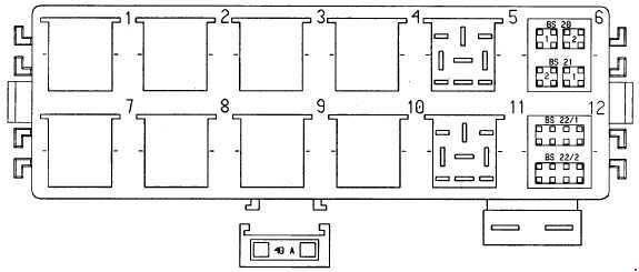 | B10 | 15 | Instrument Cluster Diagnosis Mirror Adjustment (to 1997) Headlight Vertical Aim Control (from 1999) ALWR (from 2001) Parking Assistant (from 2001) |