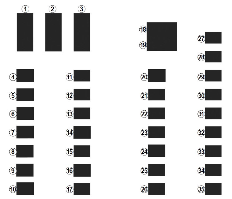 | 36 | Interior lighting, electric windows, air conditioning, electric door mirrors, brake lights, ABS, passenger compartment ECU |