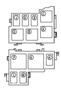 | J | D7F744, F8Q, F9Q, K9K:Not in use F9Q790 (4×4): Diesel injection computer supply K4M750: Injection locking |
