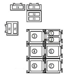 Renault Kangoo – fuse box diagram – passenger compartment relay box