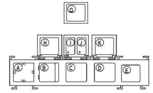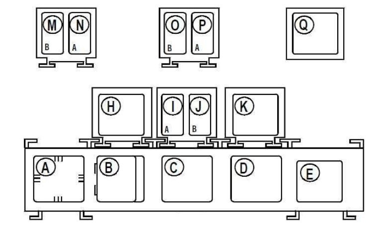However, the relay board (M,N,O,P,Q) is located behind the instrument panel.