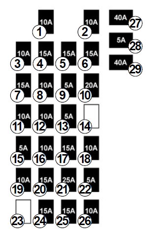 | 16 | Brake lights, additional equipment, navigation, ABS, ESP, boot light, interior lights, rain and light sensor, charging warning light |