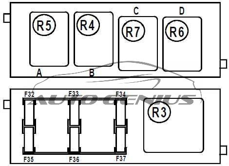 This fuse box is located in the passenger compartment above the passenger compartment UCH on the driver’s side