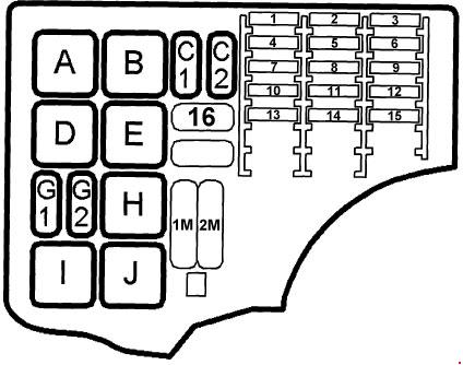 Saab 9-3 – fuse box diagram – engine compartment
