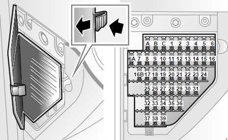 Fuse panel in the instrument panel