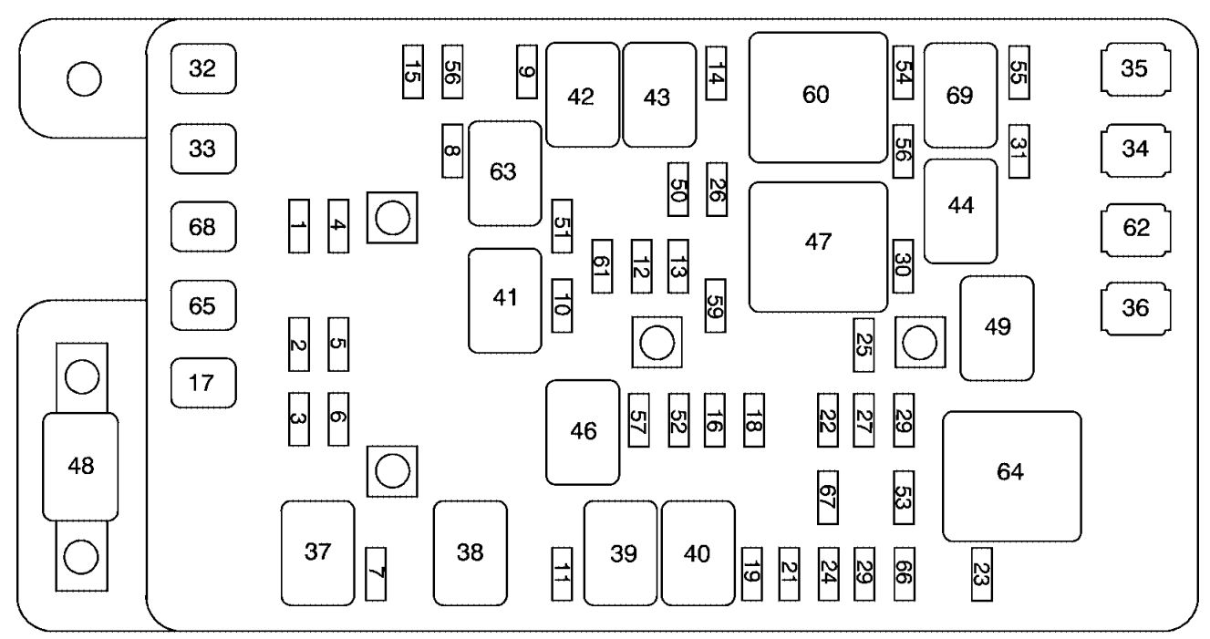 The rear underseat fuse block is located on the driver’s side of the vehicle, under the second row seat.