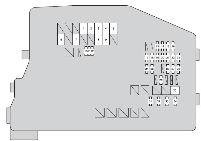 | 13 | ECU-IG1 NO.1 | 5 | Electric power steering, shift lock system, moon roof, tire pressure warning system, charging system, paddle shift switches |