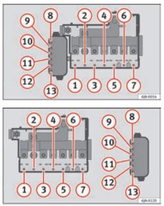 | 22 | Heating control panel, control unit of the climate control, telephone, general instrument panel, steering wheel angle sensor, multifunction steering wheel, automatic gearbox key lock |