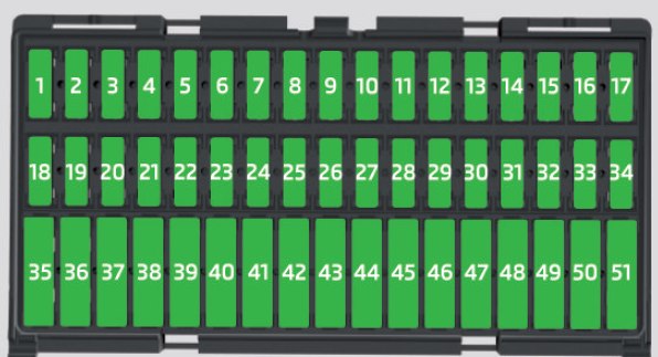 | 40 | Lambda probe, radiator fan, gas valve, oil pressure valve, valve for activated charcoal filter |