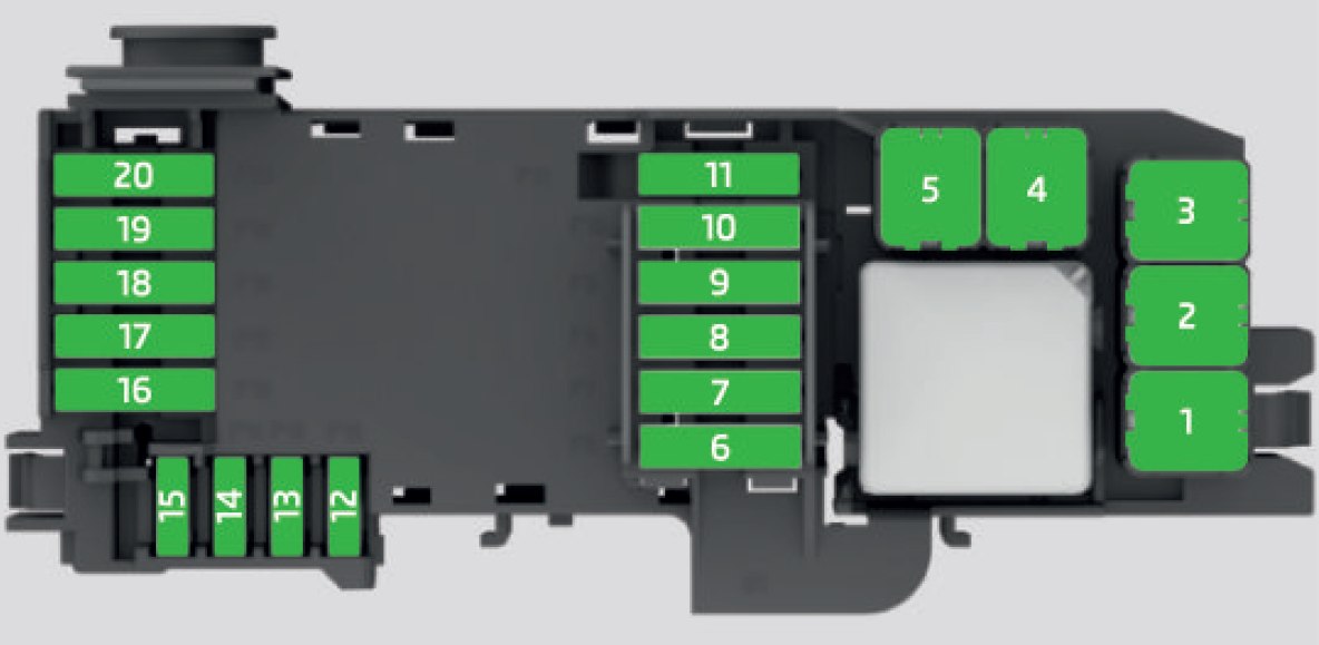 | 14 | Operating lever under the steering wheel, light switch, ignition key removal lock (automatic gearbox), diagnostic connector, headlight flasher, SmartGate controller, rain sensor, light sensor |