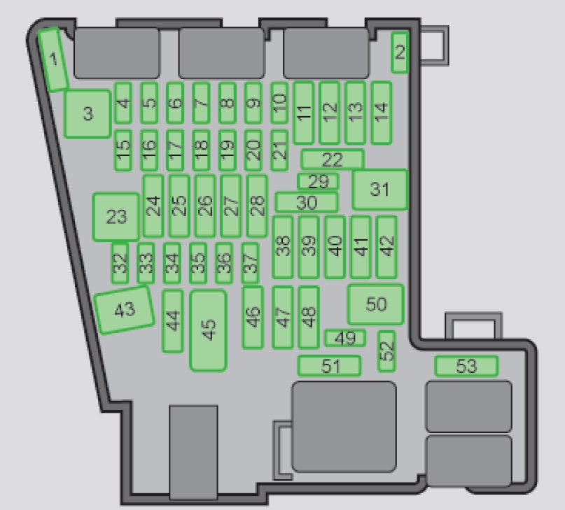 | 42 | Control unit for central locking rear door – left, right, headlight cleaning system, windscreen wipers |