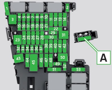 | 34 | TCS, ESC, Tyre Pressure Loss Indicator, air conditioning, reversing light switch, mirror with automatic blackout, START-STOP, heated rear seats, parking brake, light switch |