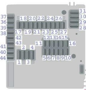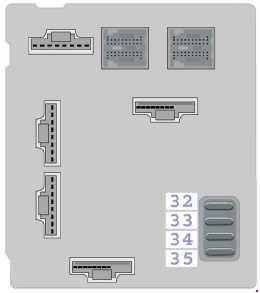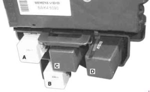 Smart Roadster – fuse box diagram – retaining frame with plug positions for relay