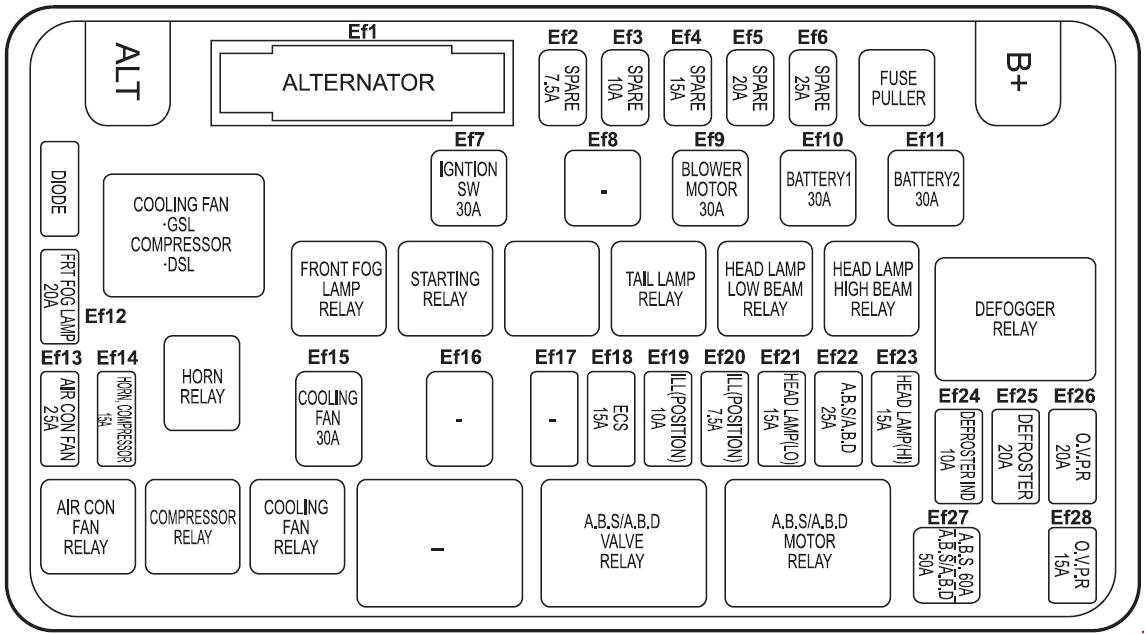 SsangYoung Korando – fuse box diagram – compartment fuse box