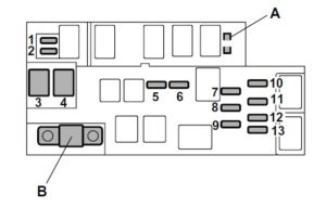 Subaru Outback – fuse box – engine compartment (2.5 liter models)