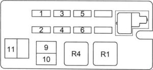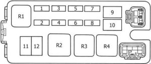 | 2 | DRL | 7,5 | Dimmer SW, Light Control SW, Daytime Running Light Relay (Main), Daytime Running Light Relay No. 4, Diode No. 1 (for Daytime Running Light System), Diode No. 2 (for Daytime Running Light System) |