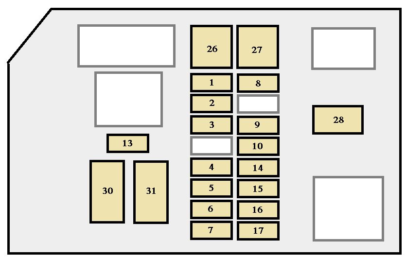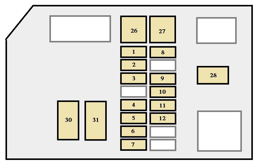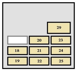 | 25 | IGN | 7,5 | SRS airbag system, multiport fuel injection system / sequential multiport fuel injection system, discharge warning light |