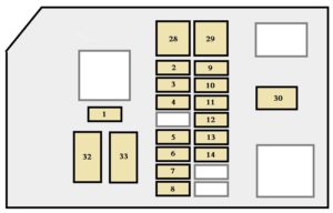 | 30 | AM2 | 30 | Starting system, “IGN” fuse |