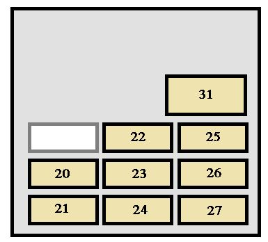 | 27 | IGN | 7,5 | SRS airbag system, multiport fuel injection system / sequential multiport fuel injection system, discharge warning light |