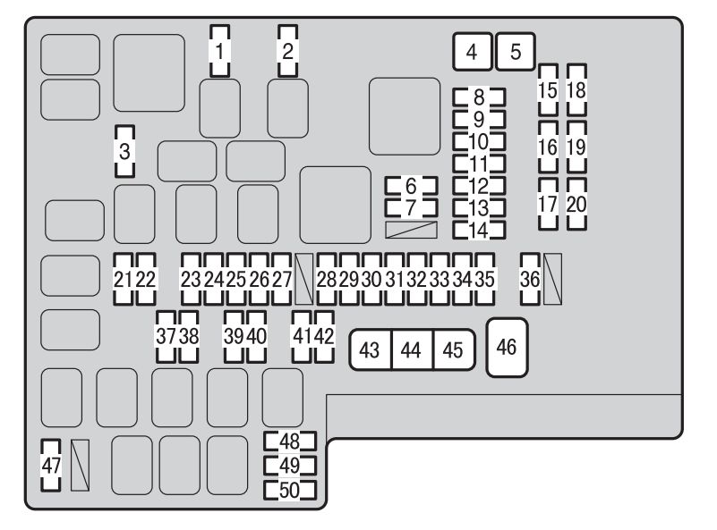 | 45 | AM2 NO. 1 | 40 | Starting system, engine control unit |