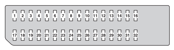 | 24 | ECU-IG NO.2 | 7,5 | Back-up lights, multiport fuel injection system/sequential multiport fuel injection system, audio system, AFS, Toyota parking assist-sensor |
