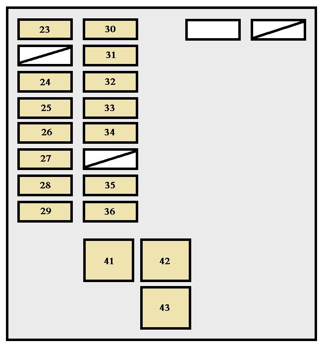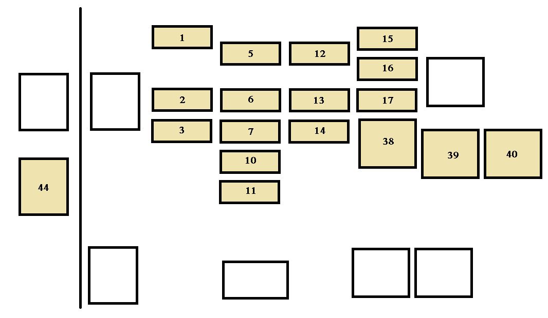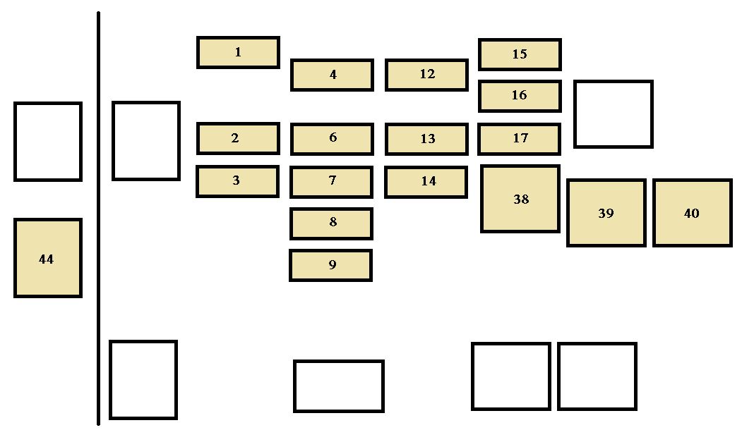 | 47 | IG SW | 40 | “CIG/RADIO” and “GAUGE” fuses |