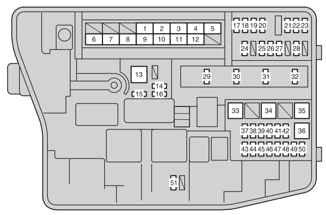 | 27 | AM1 | 7,5 | Starting system, ACC, CIG, ECU-IG NO.2, HTR-IG, WIPER, RR WIPER, WASHER, ECU-IG NO.1, ECU-IG NO.3, SEAT HTR |