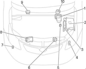 | 29 | ECU-IG NO.3 | 10 | Toyota parking assist-sensor, AFS, windshield wiper de-icer, electric parking brake, pre-crash seat belt, paddle shift switch, tilt & telescopic steering, electric power steering |